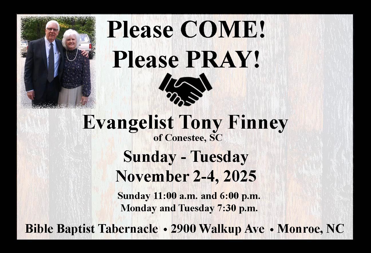Lord willing, Pastor Leonard will preach tonight. Please come praying.